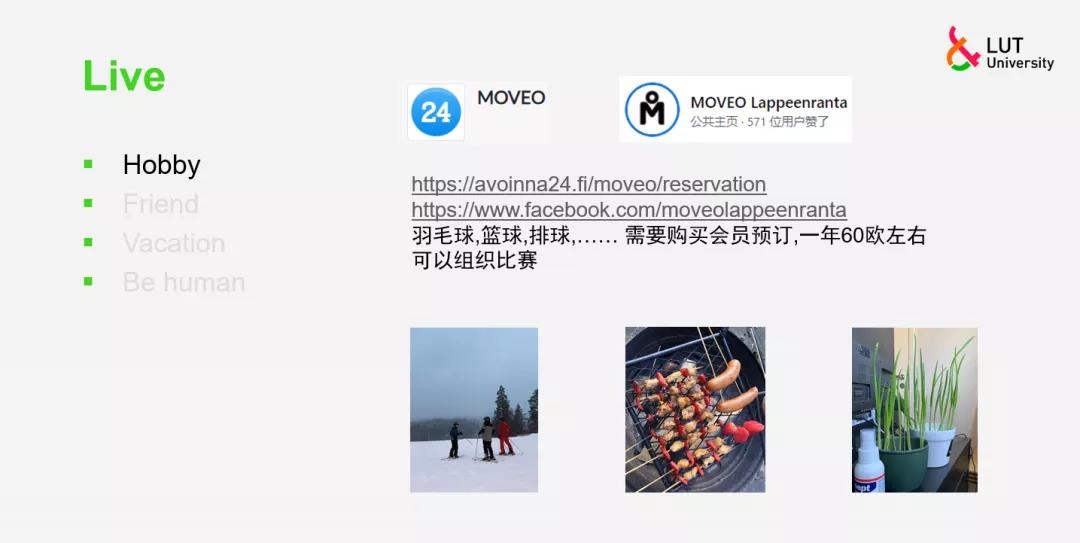 在解决了“生存”问题后,如何追求高质量的“生活”呢?黎昌洋博士从兴趣爱好、社会交往、假期安排和入乡随俗四方面为大家生动讲解了在芬过冬的事项,并介绍了羽毛球、篮球、排球等多种活动场地预订方法,以及相关网上交流群,鼓励同学们加强身体锻炼,保持身心健康。