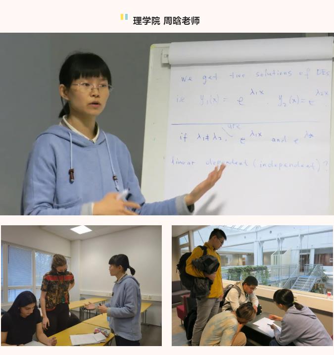 任课教师认真负责,学生有问题时,老师们都会不厌其烦地耐心讲解。所有教学资料在Moodle系统中都能轻松找到,无论是预习、复习还是拓展学习都非常方便。每周作业量比较大,而且评判标准严格,但有压力才有动力,大家学习积极性高涨。