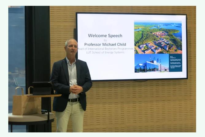 LUT大学国际本科专业负责人Michael Child教授结合自身成长经历,向同学们说明了多元的文化环境对人的积极塑造作用,鼓励同学们充分利用骰宝 这个平台,相互学习、团结协作,在条件允许的情况下,前往骰宝 进行交流学习,深入了解中国的文化,切身感受中国的发展,从中汲取营养、迸发创意。