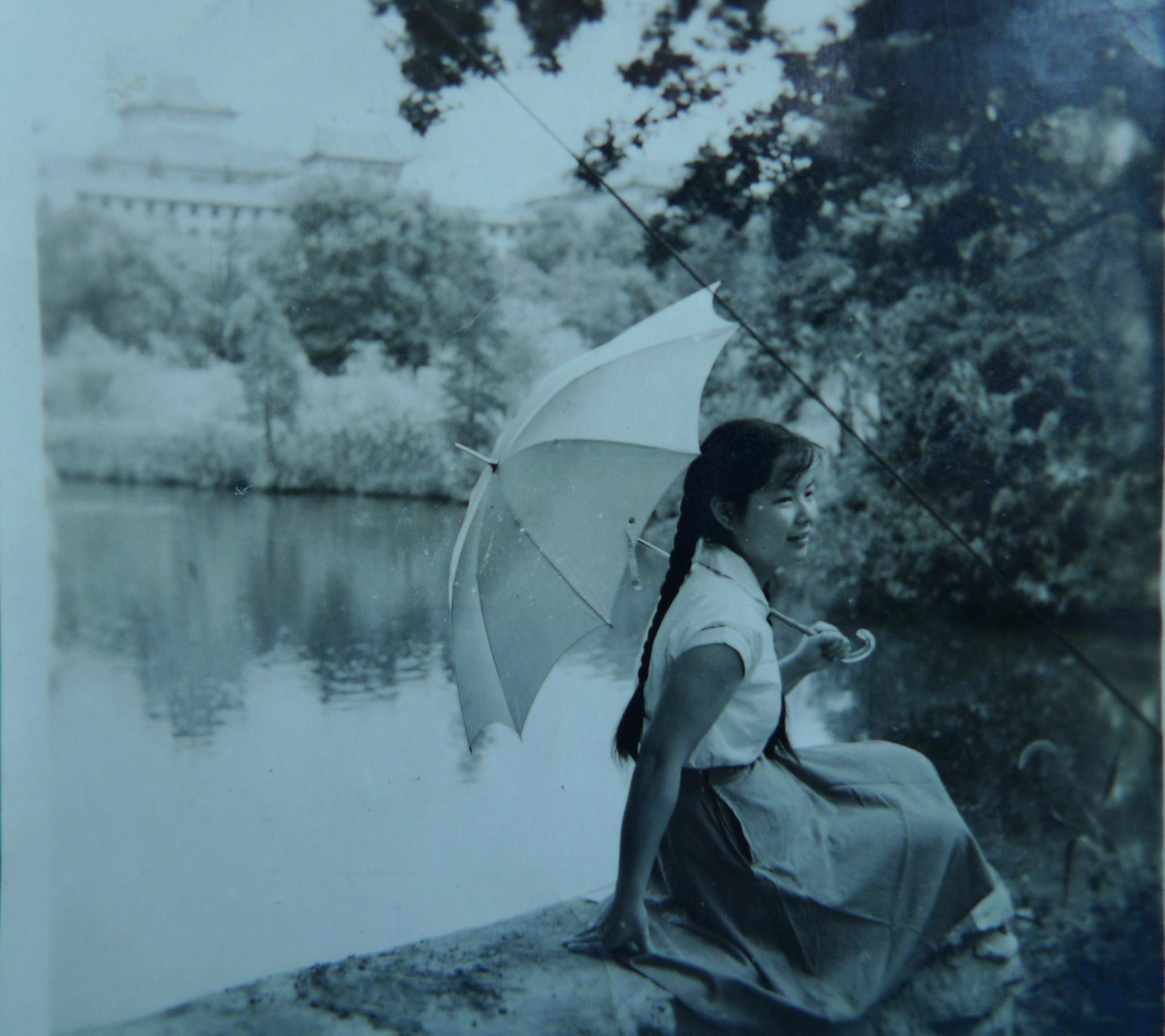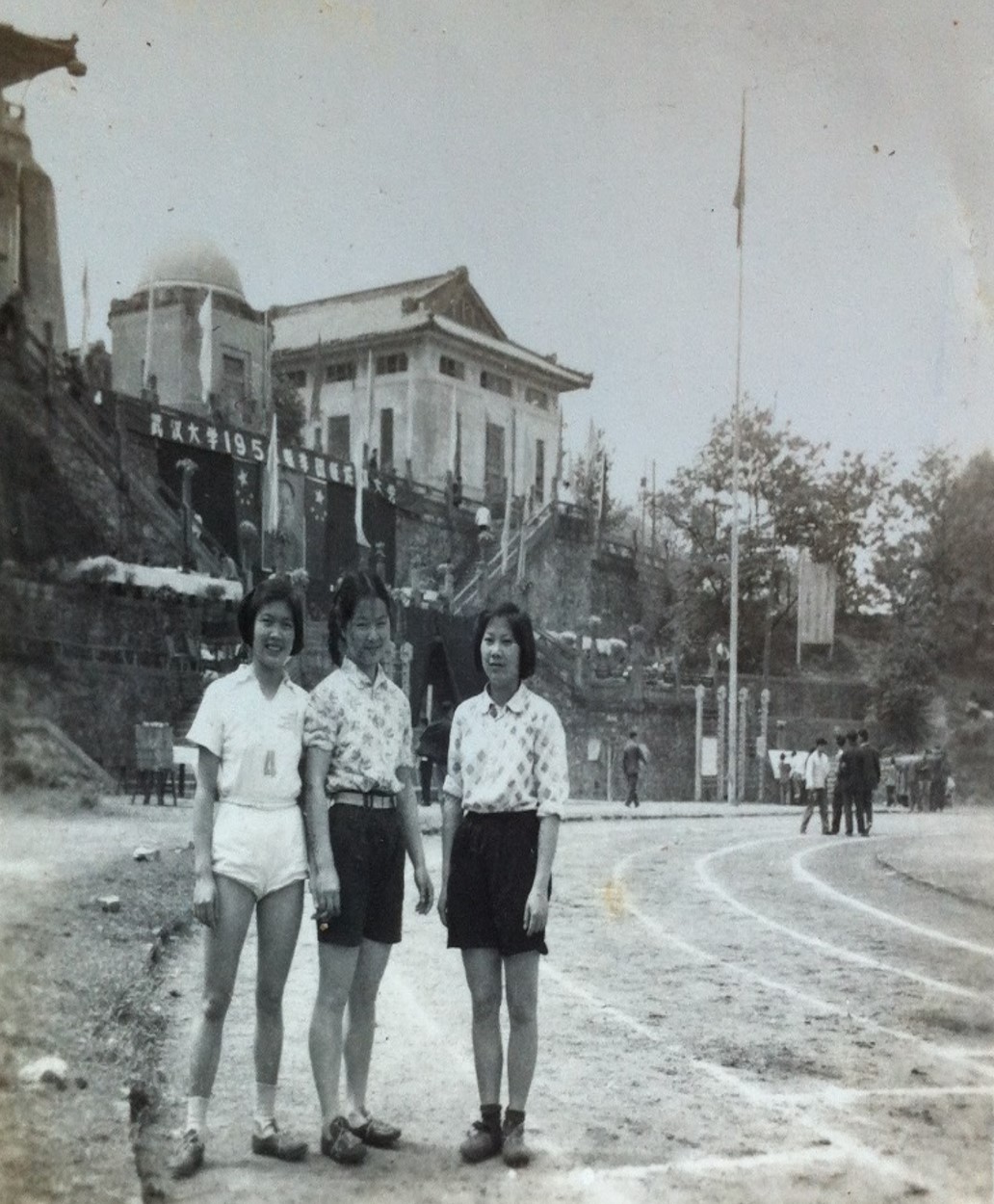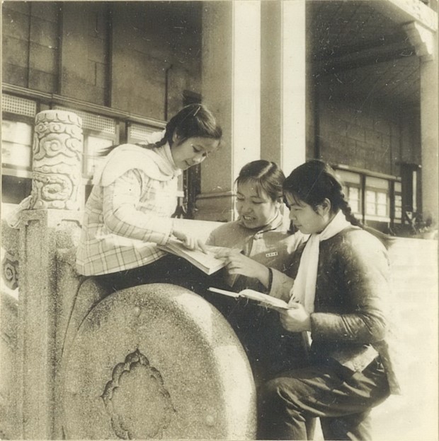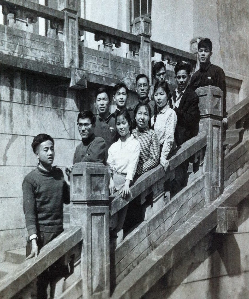1962年张俐娜(右一)与同学在骰宝 图书馆门前
