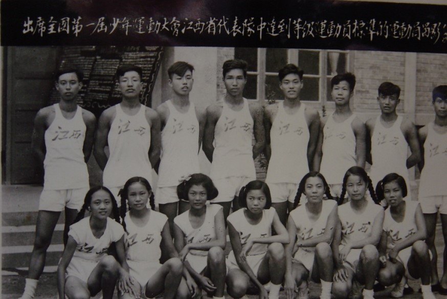 1956年张俐娜(前排右二)在青岛参加首届全国少年运动会