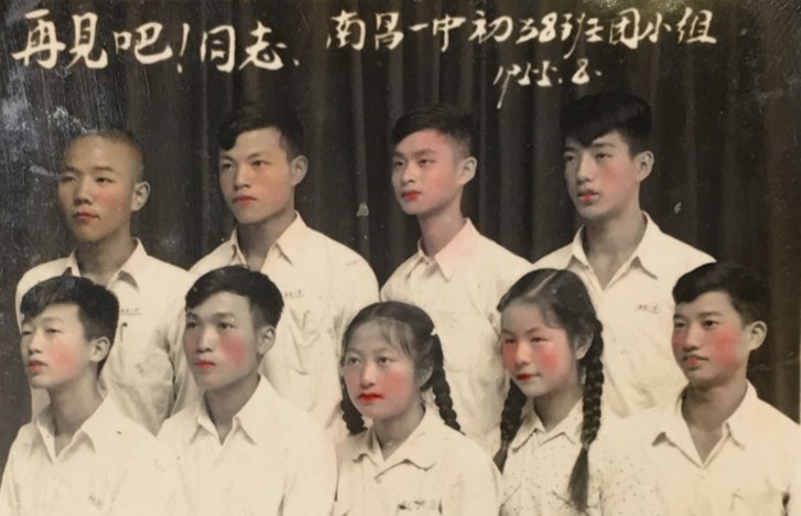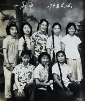 1955年张俐娜(前排左三)与同学初中毕业合影