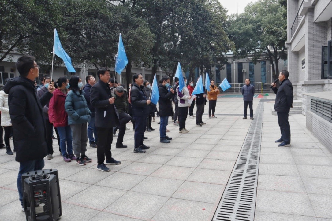 运动会开始前,举行了简短而隆重的开幕式,开幕式由学院工会主席周洪元主持,学院党委书记卢昌宁出席并致辞。卢昌宁书记在致辞中指出,化学学院师生平时科研、工作和学习压力较大,趣味运动会给师生们一个释放压力、增进情谊的机会,希望各位参赛师生在轻松的趣味项目中能够得到放松,以更加饱满的精神状态投入到之后的工作、学习和生活之中。随后,周洪元宣布运动会开幕,比赛正式开始。