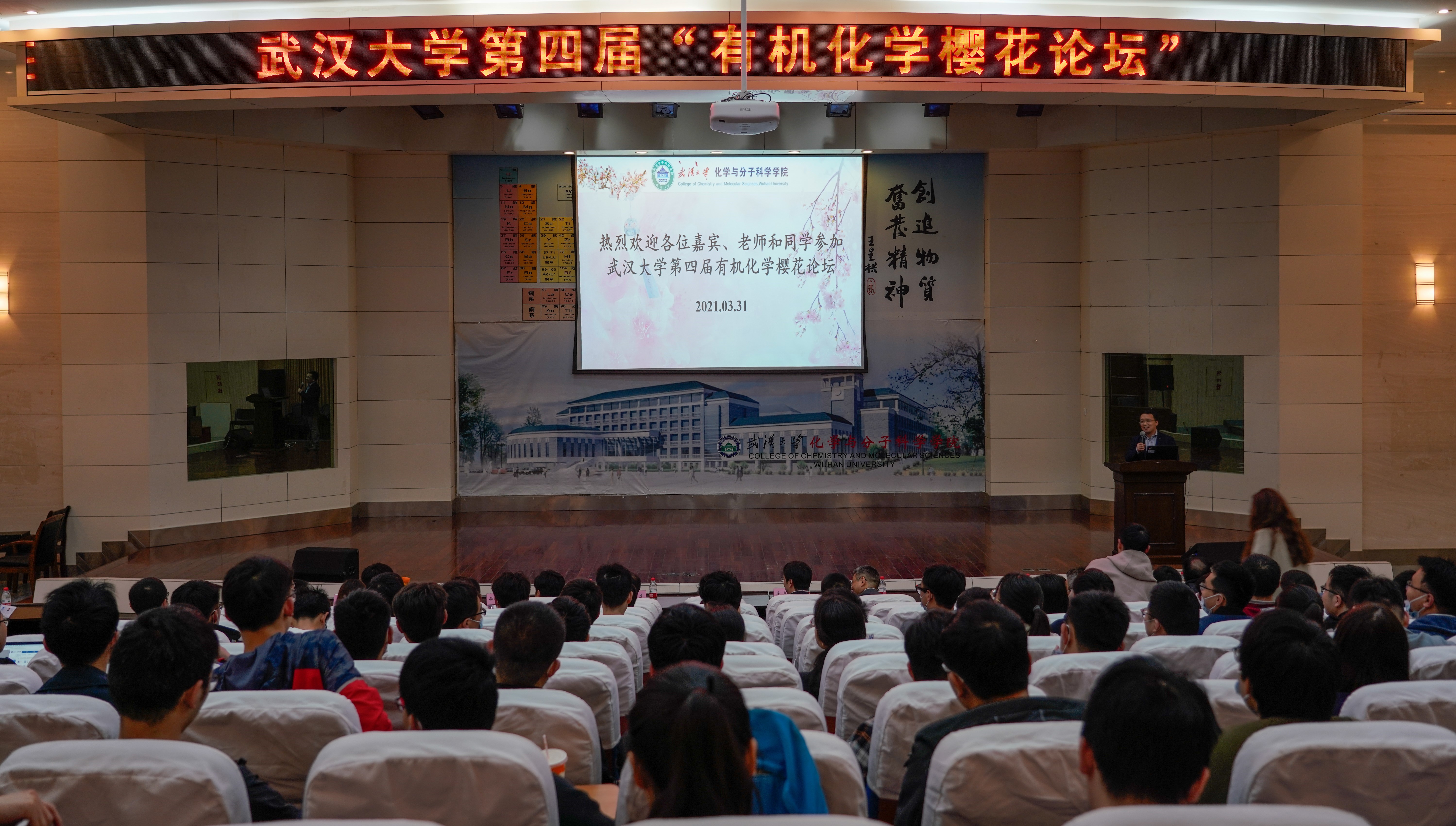 有机化学樱花论坛”是 2017 年 3 月份在我校化学院校友余志祥教授的倡议下,由周强辉教授和刘文博教授共同发起的小型学术会议。樱花论坛旨在增加青年有机化学工作者的学术交流,为我校师生提供一个宝贵的学习机会。本次论坛邀请到的主讲嘉宾有北京大学张文雄教授、西北大学栾新军教授、中科院北京化学所杜海峰研究员、华东师范大学高栓虎教授、复旦大学关冰涛研究员和中科院兰化所苏州研究院徐森苗研究员。化学院周强辉教授主持论坛开幕式并致欢迎词,对莅会嘉宾和代表表示欢迎和感谢。随后,骰宝