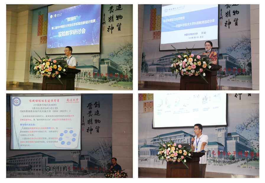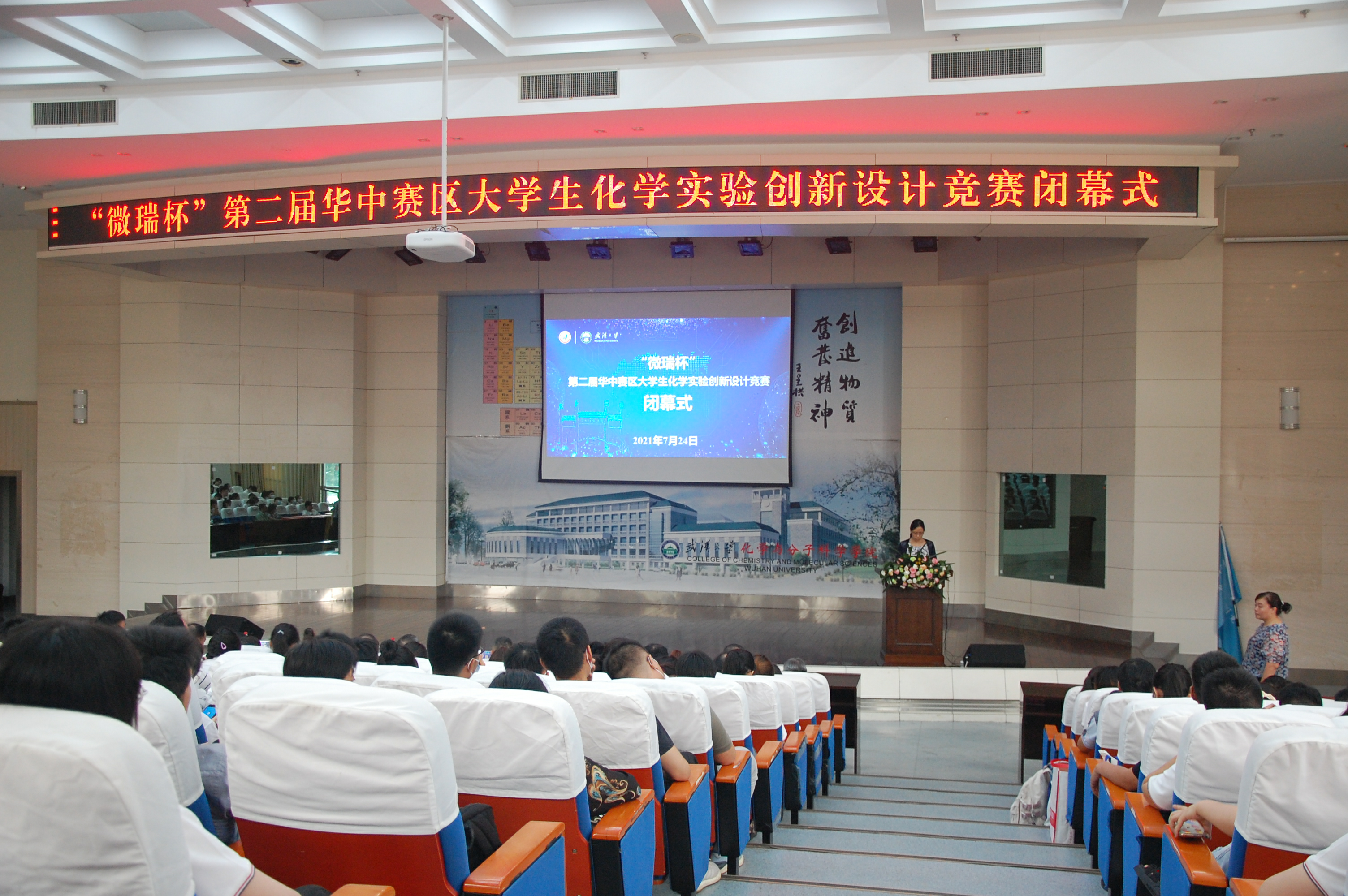 化学实验教学中心主任赵发琼教授宣读获奖名单,化学类专业教学指导委员会领导、竞赛评审专家以及学院领导为获奖队伍颁奖。最后,竞赛组委会宣布第三届华中赛区大学生化学实验创新设计竞赛承办单位为华中科技大学。至此,第二届华中赛区大学生化学实验创新设计竞赛圆满落下帷幕。