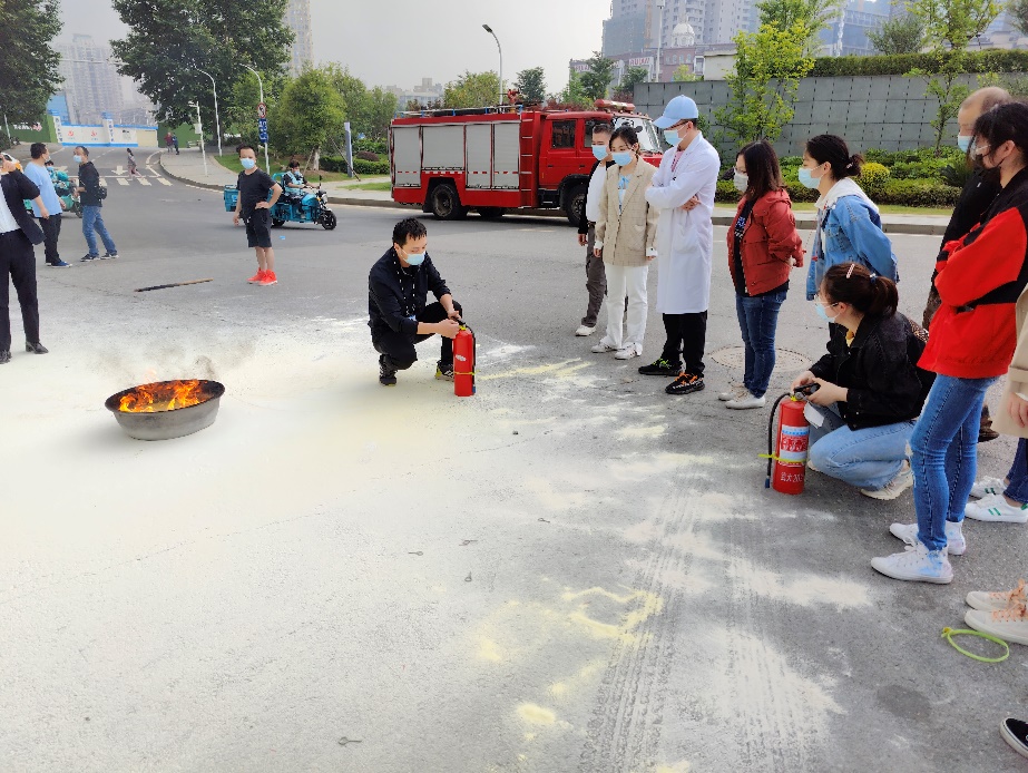 演练开始由保卫一分部治安科副科长李涛讲解了灭火器及呼吸面罩的正确使用方法以及日常火情发生后的应急处置流程,随后由保卫部协助在化学院西门外空地现场模拟突发火情,2021级研究生新生及物业安保人员分别按照规范的操作步骤使用灭火器对火势进行扑灭。经过演练,在场参演人员的安全意识及安全技能都得到了提高。