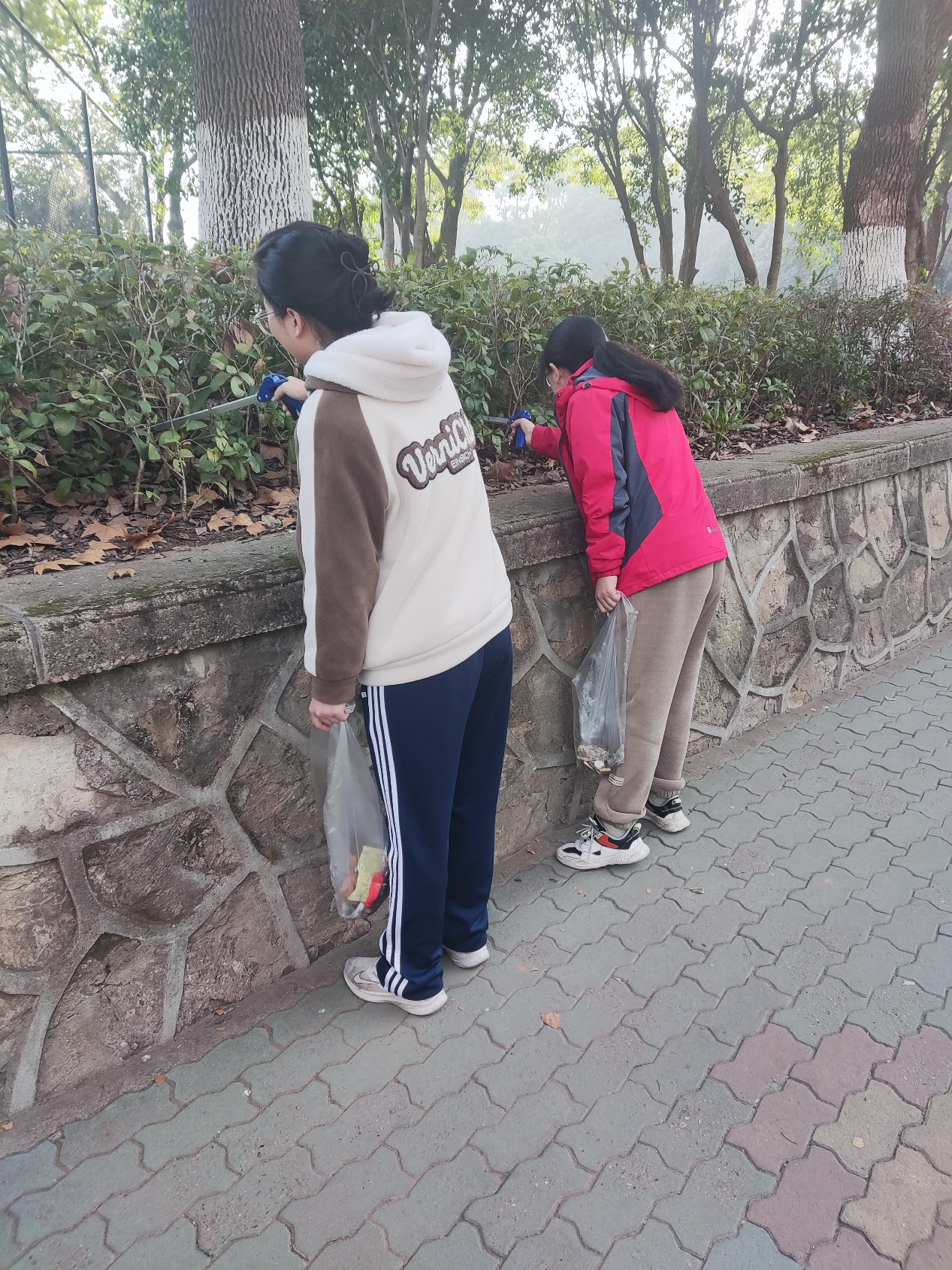 志愿者们各显身手,通力合作,分段分块打扫,有的拿着扫把披荆斩棘,有的拿着垃圾袋拾起地上的垃圾……偶然间的春风吹过,刚刚清扫完的路面又重新散落了一地的落叶,志愿者们又重新将落叶清理干净。就这样,一片片落叶与垃圾都进入垃圾桶完成了它最后的使命。就这样风声,树叶声,扫帚声与志愿者们的欢笑声交织在一起,形成了一首青春的劳动赞歌,这赞歌蕴藏着志愿者们不怕苦,不怕累,讲奉献的美好精神。