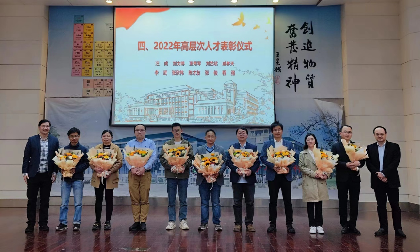 人才表彰仪式上,院长庄林、副院长邓鹤翔为2022年入选高层次人才送花祝贺。刘文博、程强作为代表发言,表示会加倍努力工作,力争出更多高水平成果。