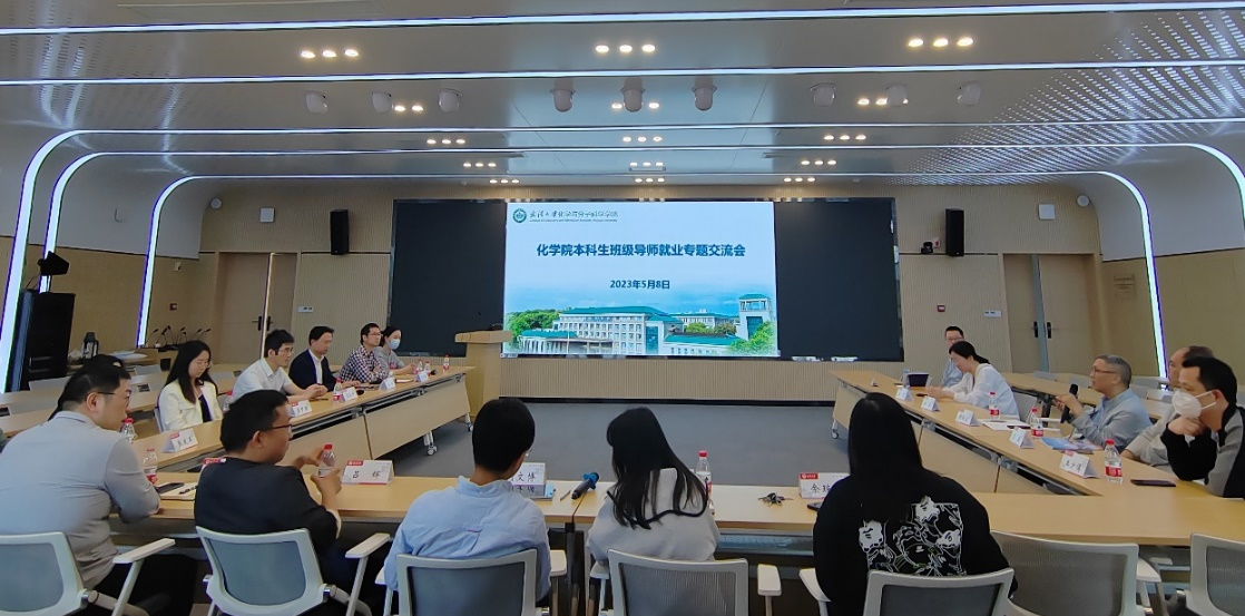 在随后的自由交流环节,几位班级导师结合自己在日常工作中遇到的问题进行了分享。2019级5班导师胡晓宏谈到,通过身边学生的经历,他发现学生中存在一些共性问题:职业规划不明确,容易沉迷游戏等,作为班级导师和辅导员,要及早介入。2021级强基班导师刘文博提到,化学专业教育的目标是培养高素质科研人员和专业人才,学生的专业课基础要打扎实,目前大家面临着如何提高学生学习的主动性的难题,希望学生能从自身就业需求出发主动求学。2021级2班导师余琼卫针对学生考公考研压力大、上岸难的问题,提出要关注学生的心理健康,鼓励学生自立自强。周金平副院长认为,当代年轻人的就业观念发生了变化,有些年轻人贴上了“佛系”的标签,抱持着“躺平”的心态,连体育课也不愿意参与,丧失了拼搏的激情,延迟就业甚至逃避就业,作为育人工作者,要尽心尽力,多与学生沟通交流。