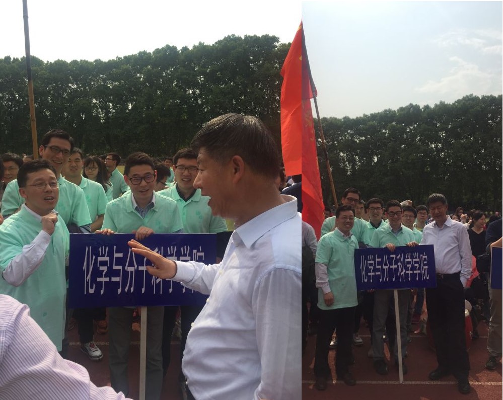 组织师生参加学校拔河比赛开幕式,啦啦队员们穿着整齐的队服,高举化学学院院旗,在奥场形成了一道靓丽的风景。校党委书记韩进更是亲自来到骰宝