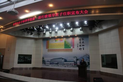 随后,周翔院长代表学院新一届行政领导班子表态。他对学校的信任、学院教职员工的支持,以及上一届领导班子付出的努力表达了感谢。接着,他代表新一届行政领导班子成员郑重提出今后的努力方向:一、新一届行政班子将和院党委一起精诚团结,密切合作,共谋发展,树立大局意识、服务意识和担当意识,为建设世界一流的学院和学科而努力奋斗,不辜负组织和教职工的信任;二、要加强学科建设,包括人才的引进和培养,本科生和研究生的培养,科研工作的加强和作为科研重要力量的博士后的发展;三、加强科研平台的建设和大型仪器设备的管理,全力推进国家重点实验室申报,规划大型仪器设备管理,整合资源,合理共享,促进学科发展;四、加强学院综合化管理,形成一流的教学和科研服务体系,继续在后勤保障、消防安全、财务、实验室管理等方面强化责任和服务意识,以最好的管理服务于师生,努力改善民生,关注教职工待遇,让教职工能安心做好本职工作。最后,周院长恳请学校领导和全院教职工继续支持新一届行政领导班子的工作,为学院走上新台阶而努力,为成为“国内一流、世界知名”的化学学科而奋斗。