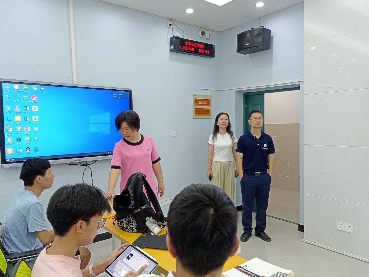 党委书记王丽萍一行对教学情况进行巡视检查,党委副书记何剑超、学校督导刘立建、学工办主任蒋莉、教学秘书许艳陪同。