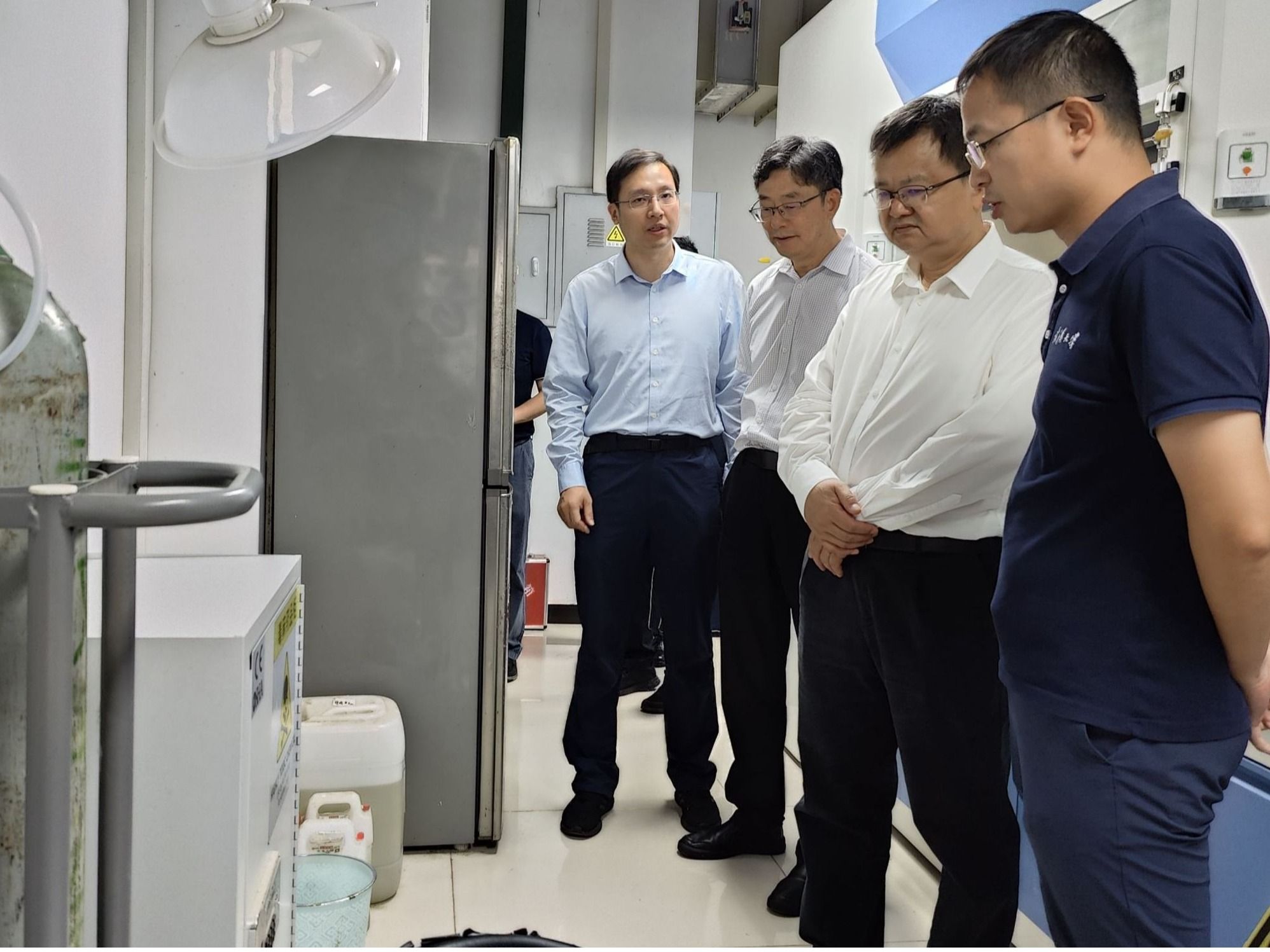 进行了国庆节前的安全检查,检查组一行先后检查了学院安防监控室、单分子表征实验室及骰宝