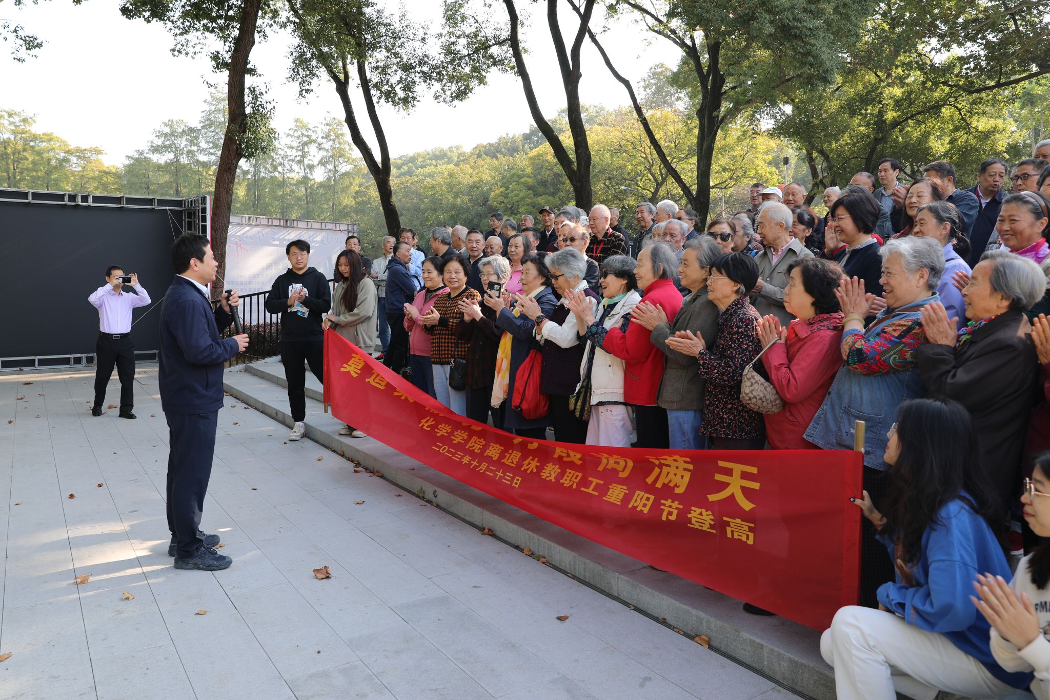 秋高气爽,丹桂飘香,阔别已久的老同志们在万林博物馆门前集合,亲切交流,重逢的喜悦溢于言表。李良俊处长强调,学校与学院的发展离不开老同志们几十年如一日的辛勤耕耘与无私奉献,非常欢迎老同志在这个特殊的节日珞珈登高,感受学校日新月异的发展;并衷心祝福老同志们重阳节快乐,身体健康。王丽萍书记表示,能够与曾经的恩师共同参加本次登高活动,她倍感荣幸,本次活动有近一百位学院退休老同志参加,希望本次活动能够为老同志们的退休生活带来更多的欢声笑语。