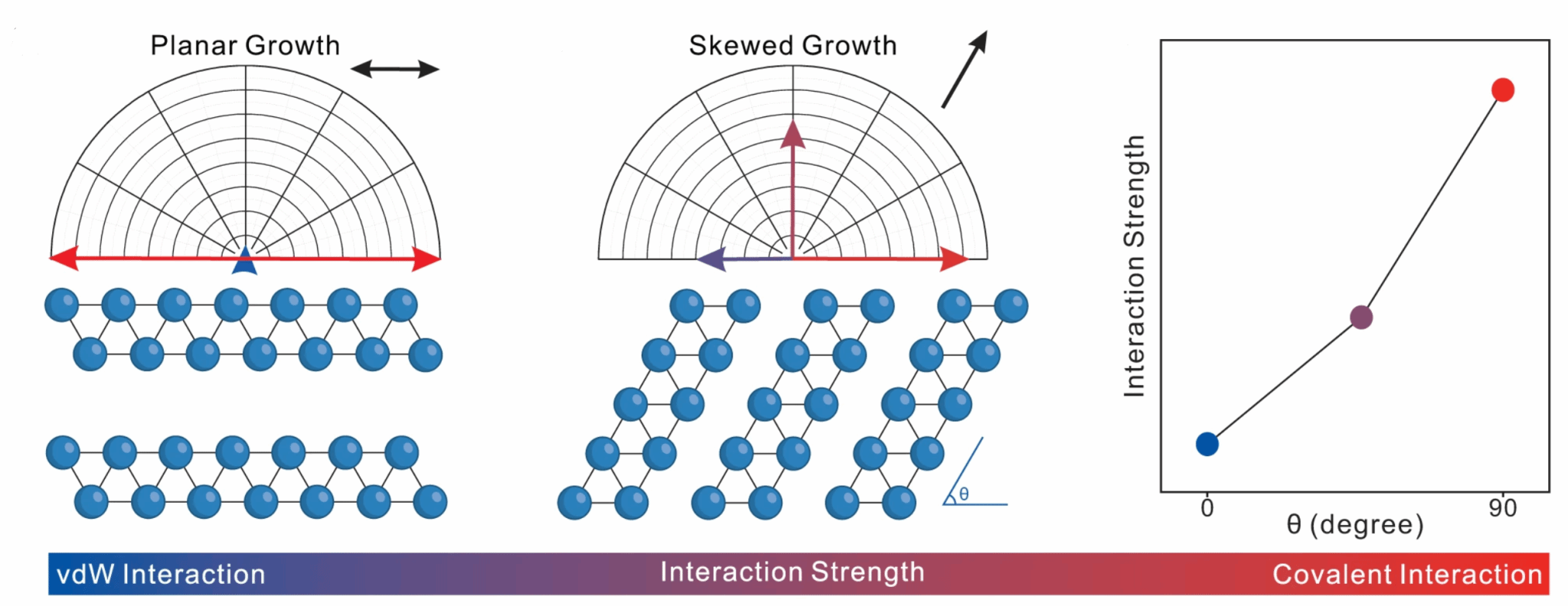 付磊团队报道了一种多米诺结构的二维介层状材料,与传统的层状和非层状材料不同,其特殊的层间相互作用由范德华力和共价键协同贡献,两种作用力都不垂直于二维生长平面,由此材料出一种类似于多米诺骨牌的介层状结构。
