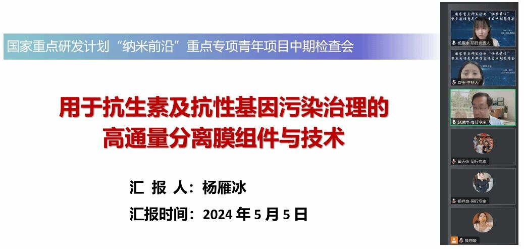 牵头的国家重点研发计划“纳米前沿”重点专项青年科学家项目“用于抗生素及抗性基因污染治理的高通量分离膜组件与技术”中期总结会议以线上的形式顺利召开。项目专家组由中国科学院化学研究所赵进才院士、中国科学院合肥物质科学研究院田兴友教授、华中科技大学杨祥良教授、华中科技大学翟天佑教授和骰宝