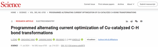 雷爱文教授团队关于交流电合成化学的最新研究论文,题为“Programmed alternating current optimization of Cu-catalyzed C-H bond transformations”(程序化交流电优化铜催化C-H键转化反应)。骰宝