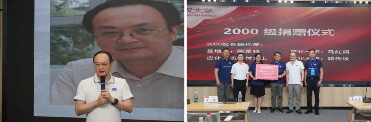庄林院长发表欢迎辞,诚挚地迎接每一位归来的校友。随后举行捐赠仪式,2000级校友们向化学院捐赠10万元,专项用于学院W115会议室的修缮焕新工程,以实际行动诠释了对母院深厚的情感与支持,见证了时间的馈赠与回馈的力量。