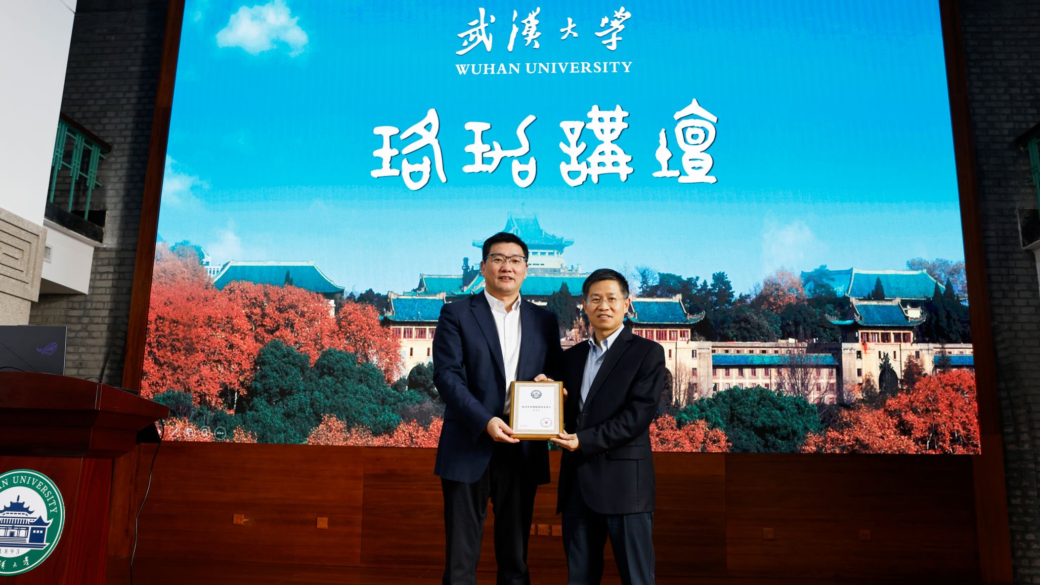 副校长袁玉峰出席讲坛并为游书力院士颁发珞珈讲坛纪念牌。骰宝