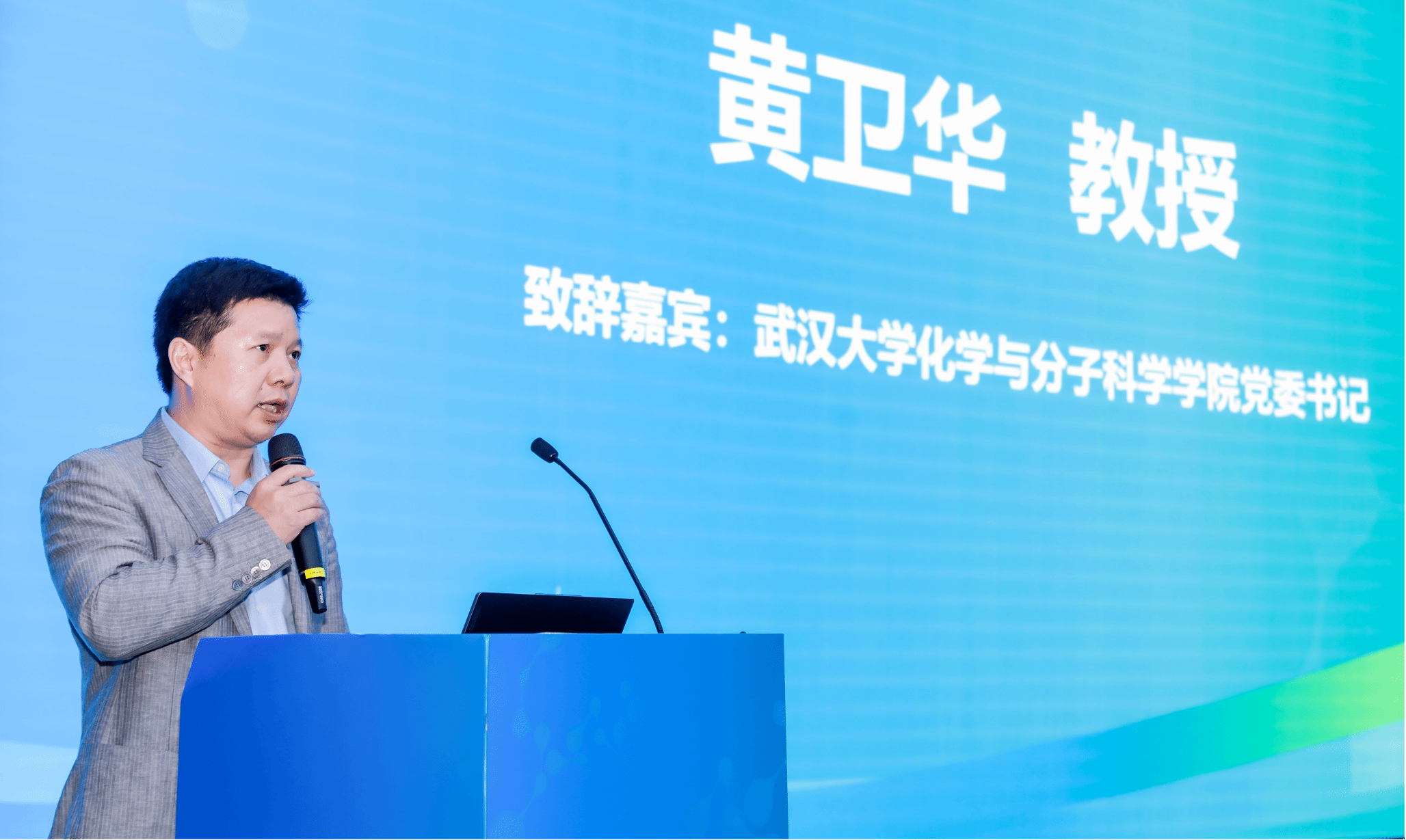 党委书记黄卫华教授发表了致辞,他代表学院对参会的专家、组织者、志愿者、报告人、赞助商和工作人员表示了感谢,并对会议的成功举办表示了祝贺。他表示期待未来有更多的青年学者加入该领域,共同探索天然产物全合成的奥秘。
