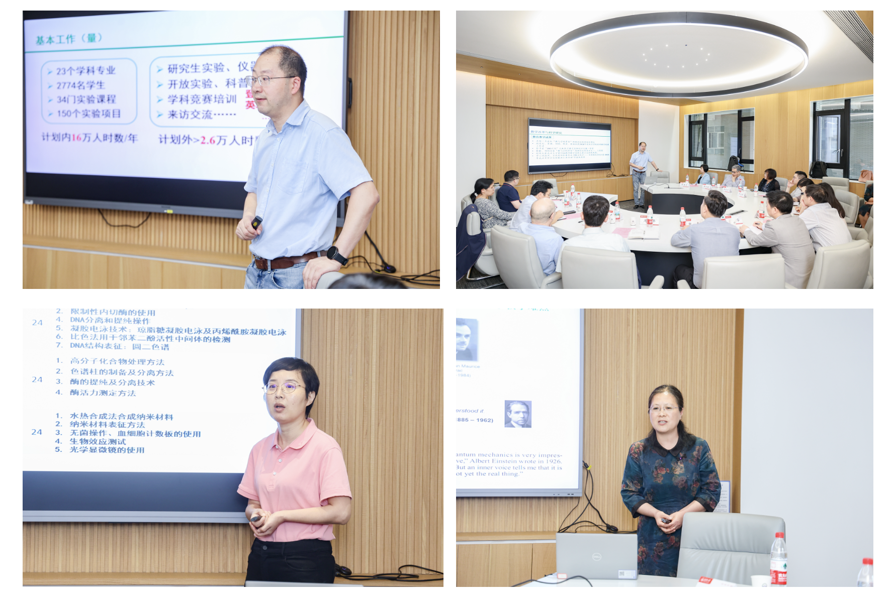 )二〇二四年度工作总结汇报,从中心人员构成、年度工作、人才培养成效、人才队伍建设、教学改革研究、信息化、开放与示范辐射等诸多方面对中心工作进行了汇报。谢敏老师作了“化学生物学实验的开设与建设”报告,从化学生物学课程的演变发展、教学内容设置等方面详细展开,并以两个具体实验内容讲解了中心化学生物学实验的开设。侯华老师的汇报“分子模拟实验教学研究与实践”,从课程理念和教学目标、课程内容和教学方法、课程基本情况和展望几个方面生动形象的展示了分子模拟实验课程,侯老师对教学的热情深深的感染了在座的老师和专家们。