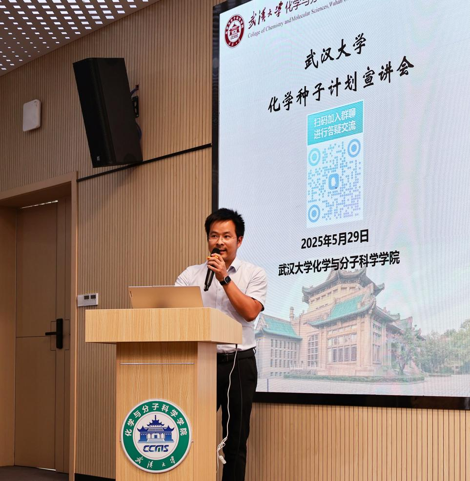 拔尖创新人才“种子计划”的项目概况,重点阐述了化学学科在人才培养方面的独特优势与支持体系。包安裕表示,期望通过“种子计划”为本科生打造更优质的平台,激励有志科研的学生投身其中,同时期待本次宣讲会能吸引更多优秀学子加入这一拔尖创新人才培养计划。