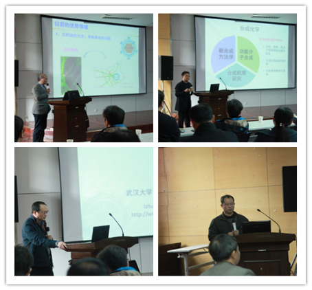 学院庞代文教授、雷爱文教授、张先正教授、庄林教授、李振教授、艾新平教授、杨楚罗教授、唐红定教授8位学科带头人、重点实验室负责人先后聚焦“生物医学分析化学教育部重点实验室发展思考”“合成化学学科发展”“生物医用高分子材料教育部重点实验室发展”“能源化学学科讨论”“材料学科建设报告”“化学电源材料与技术湖北省重点实验室学科建设规划”“有机高分子光电功能材料湖北省重点实验室及学科建设报告”“教育部有机硅化合物材料工程中心建设”做主题报告。