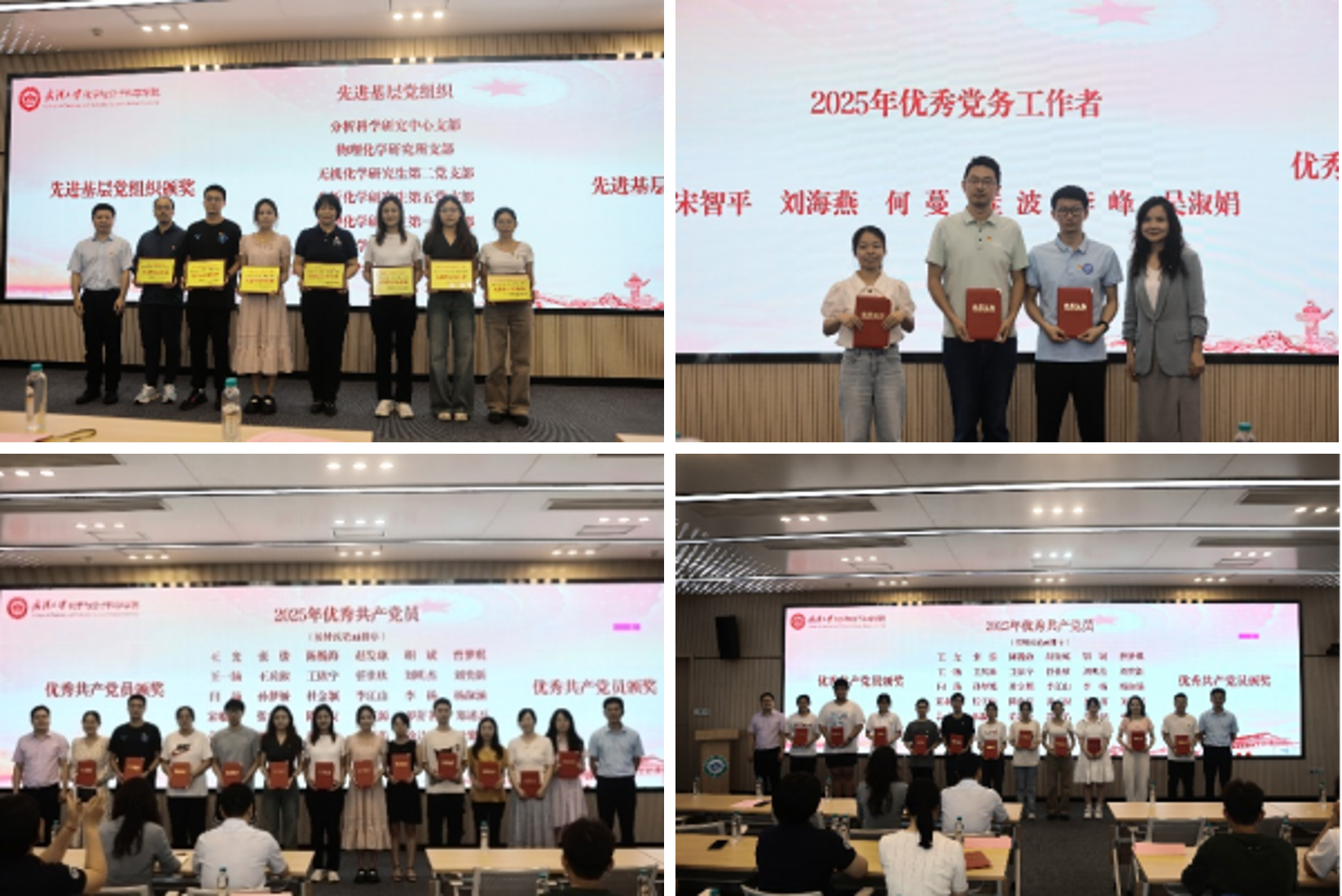 委员会关于表彰先进基层党组织、优秀共产党员和优秀党务工作者的决定》。此次学院党委共评选表彰分析科学研究中心支部等7个先进基层党组织,宋智平等6名优秀党务工作者,王一涵等31名优秀共产党员。院党委书记黄卫华,党委副书记吕晶,副院长周金平、蒋风雷为受到表彰的集体和个人颁奖。