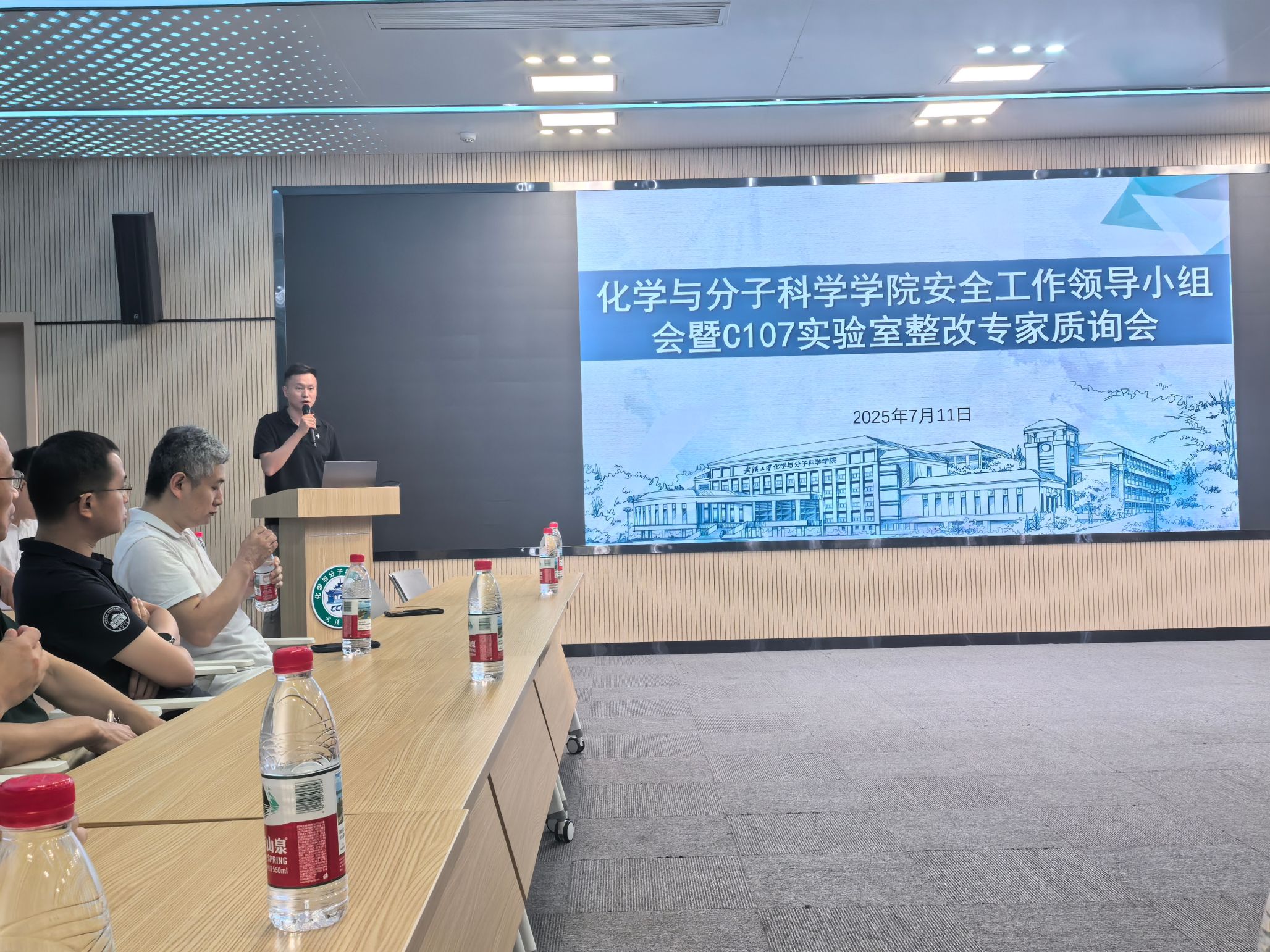 7月11日上午,学院召开安全工作领导小组会暨C107实验室安全整改专家质询会,党委书记黄卫华、党委副书记何剑超、副院长甘泉及各二级单位安全负责人、实验室安全员等出席会议,安全与实验室管理办公室陈雨平主持会议。