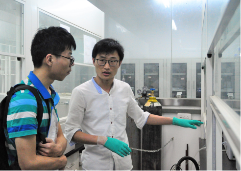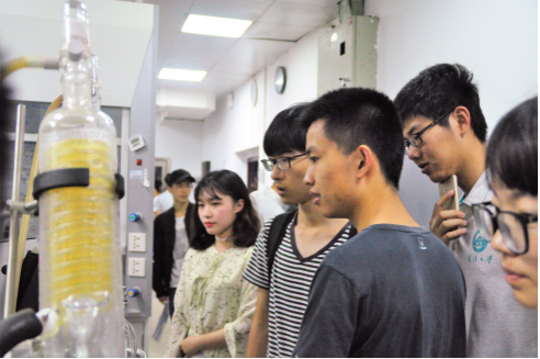 参观时,同学们带着满腔热情与憧憬,仔细的观察实验室环境与仪器,积极的与学长学姐进行了交流。其间,许多实验室都给同学们留下了深刻的印象。例如庞代文老师的纳米生物技术及生物电化学实验室,老师简要地介绍了相关科研成果,同学们都很感兴趣地向老师提出了很多有价值的问题。又如付磊老师的先进纳米材料课题组,课题组的学长学姐们非常热情地带领着同学们参观了他们三层楼的实验室,不仅介绍了相关仪器的功能与使用方法,还告诉了同学们他们进该课题组之后的收获,让同学们受益匪浅。