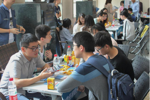 宣讲结束后,我们准备了精美的茶歇,同学们根据自己的兴趣在创隆厅院士文化墙进行自主答疑,同学们从不同角度向各课题组“摊位”的研究生们咨询相关问题,得到了耐心解答。