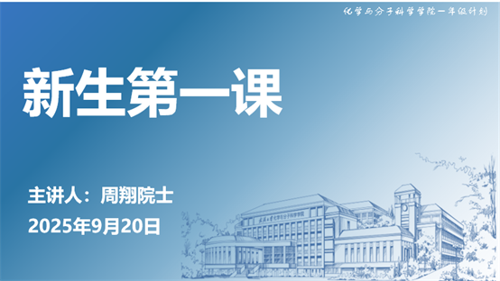 (通讯员:王怡丹、蒋莉)9月20日,中国科学院院士周翔教授以《精彩的化学》为主题,为全体2025级本科新生讲授“新生第一课”。本次活动由学院副院长周金平主持,党委副书记吕晶、学生工作办公室主任蒋莉参加活动。
