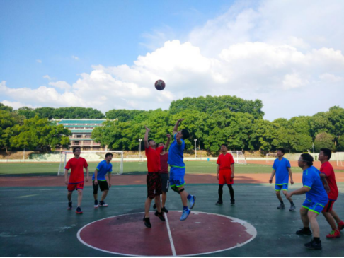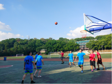 随着裁判的一声哨响,比赛拉开帷幕。尽管是友谊赛,但双方球员丝毫不懈怠。教师队率先发起进攻,凭借流畅的配合及过人的默契夺取领先优势,但毕业生队严阵以待,沉着应对,迅速改变战术,很快追平比分直至赶超。次节开打,教师队不甘示弱,交叉运球,区域防守,一个个灵活的战术,拿下了多个得分投篮。最后,教师队以3分的优势结束了上半场的比赛。
