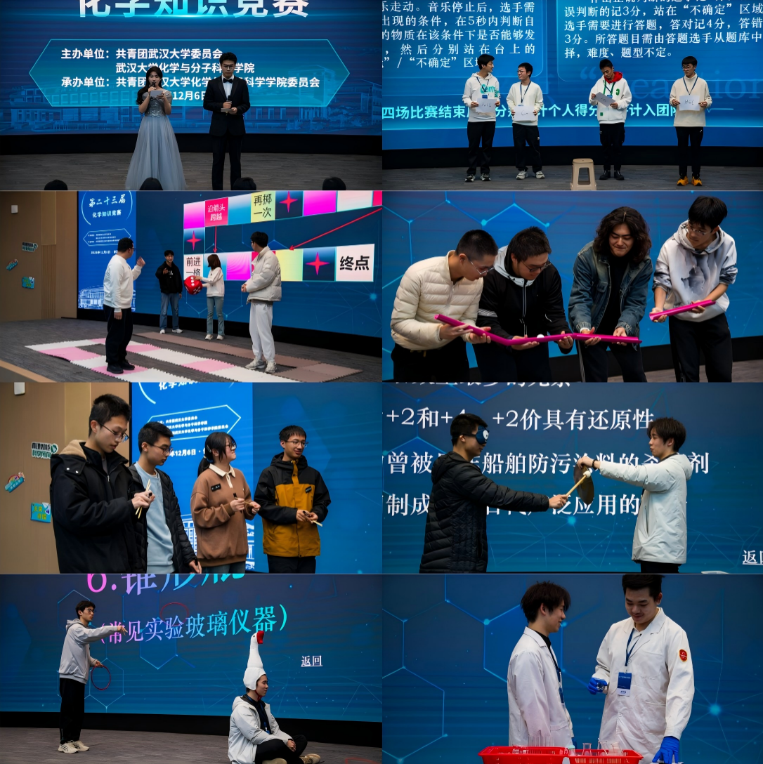 委员会承办,联动泰康医学院(基础医学院)、药学院、资源与环境科学学院、物理科学与技术学院、生命科学学院5所学院协办,吸引全校12个相关学院的200余名本科生积极参与。学院始终将人才培养置于核心地位,持之以恒夯实育人平台。“化学知识竞赛”作为学院精心培育的品牌活动,至今已连续成功举办23届,不仅成为一项历久弥新的学术传统,更彰显了学院在推动学生综合素质培养方面的坚守与深耕。活动始终秉持“以赛促学、以赛传知”的宗旨,构建起“跨学科、跨专业”的协同育人体系,并通过趣味化、游戏化的创新形式,持续推动化学知识走出课本、融入实践、深入人心,生动诠释了学院在传承中创新、在坚持中育人的扎实成效。