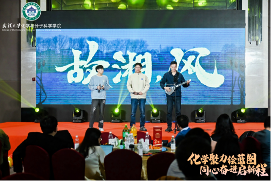 在两场学生助力演出后,曾家昱、陈雨平等师生以吉他弹唱的形式演绎了充满韵味的歌曲《故湘,风》,悠扬的旋律仿佛带来了缕缕清风。