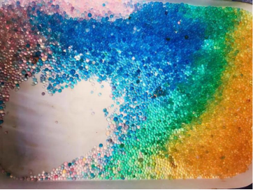 3、第6号,陈芃羽同学的“变色硅胶”,变色硅胶在红外灯的烘烤下绽放的奇妙色彩,最终得到了518票;