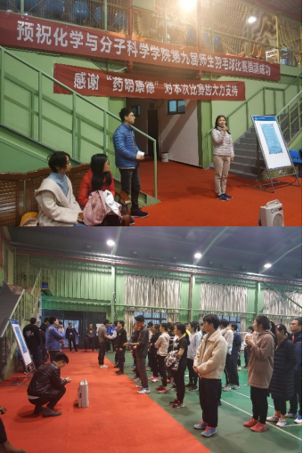 “羽球共舞,羽动化院”第九届师生羽毛球团体大赛在风雨操场拉开帷幕。首先举行的是开幕式,激昂的国歌奏响后,裁判代表蒋赉和运动队员代表胡旭辉进行宣誓,最后学院党委副书记徐冶琼发表讲话并宣布比赛开始。