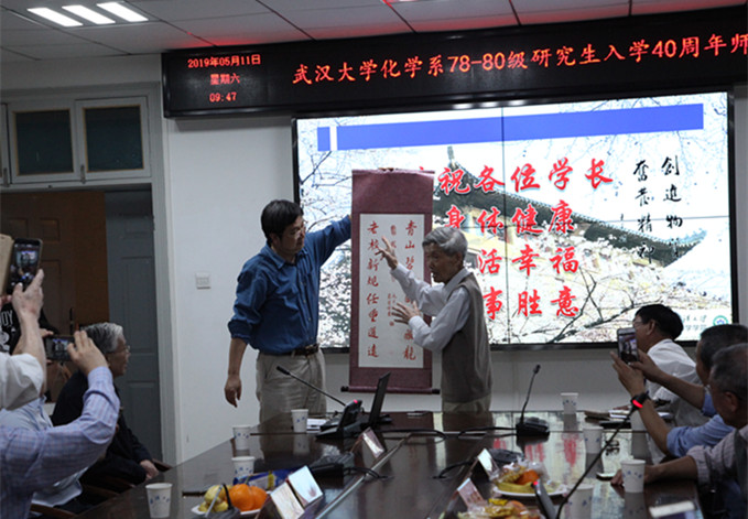 原化学系78级研究生共有31人,79级共有17人,80级仅2人。此次聚会有26位校友出席。外地的很多校友来自祖国各地,北至哈尔滨,南至深圳。更有几位校友不远万里,专程从海外赶来参加聚会。他们中不少已年过古稀,最年轻的也已入花甲之岁,实属难得。学院有幸见证这样的一次时代聚会,为前辈们的爱国、爱校、爱院、爱师之心深深感动。同心砥砺,我们将在前辈们开辟的道路上,在前辈们的关心、祝福、督导下为化学学院更加美好的明天而不懈奋斗!(文:来瑞;图:周曼莉)