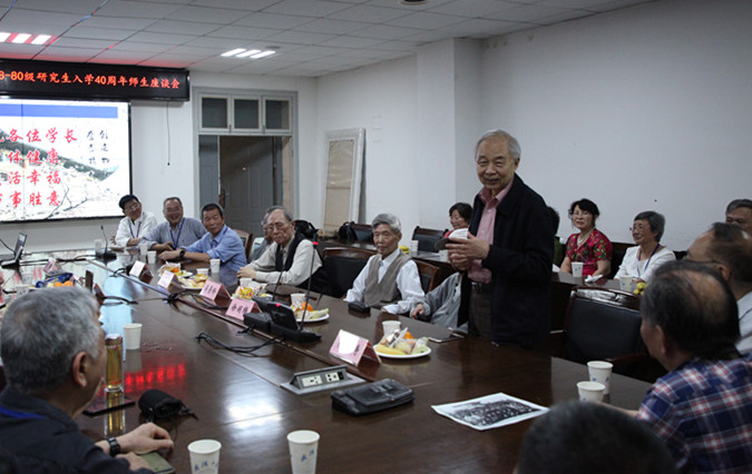 资源与环境科学学院首任书记甘复兴教授代表78-80级研究生发言,对到会的恩师和学院领导表达了崇高的敬意和由衷的感谢。他从时代背景、生源经历和历史作用三个方面介绍了这一特殊的研究生群体,讲述了他们这一代人的艰难求学奋斗之路,抒发了他们热爱祖国、怀念母校、感恩导师的真挚情怀。