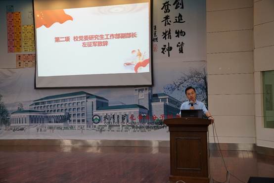 左征军肯定了化学学院能够结合学科优势、学生特点等开展研究生工作,有品牌、有亮点,指出本次活动为华中高校研究生党支部书记搭建了交流平台,并希望参会代表能够畅谈支部工作新举措、新思路,共同为提升研究生党建质量贡献智慧和力量。