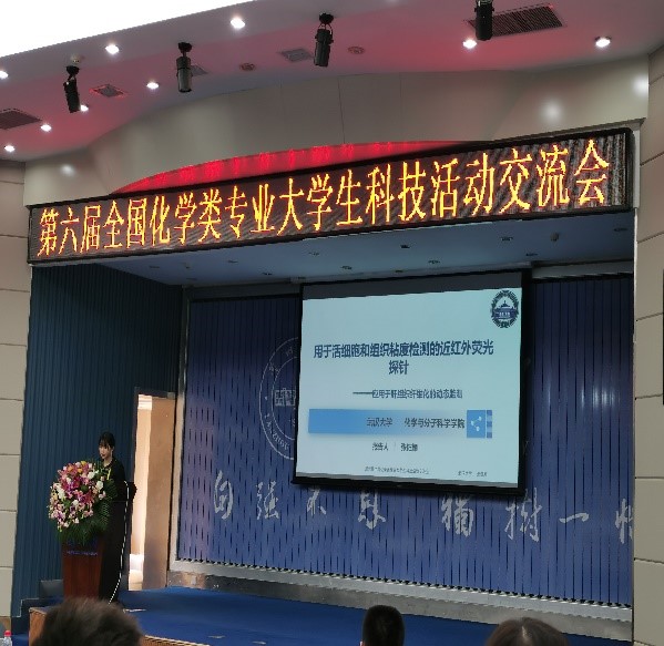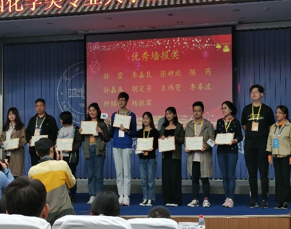 等30个高校的教师和学生代表170余人参加了此次会议。本次会议分为口头报告和墙报展示两个环节,各高校学生代表分别就本科阶段科研项目和经历感想作了报告。会上,张钰颖同学作的《活细胞和组织粘度近红外荧光探针—应用于肝组织纤维化的动态监测》报告,荣获大会报告一等奖。杨振霖同学的《电化学活化C(sp3)-H/N-H的构建N-曼尼希碱的高效析氢反应》墙报获得了优秀墙报奖。