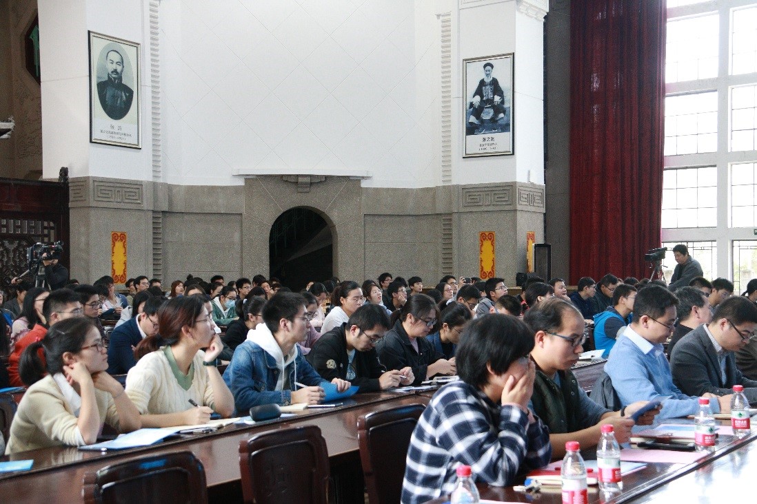 教授雷爱文主持报告会,一百余名师生聆听了报告。