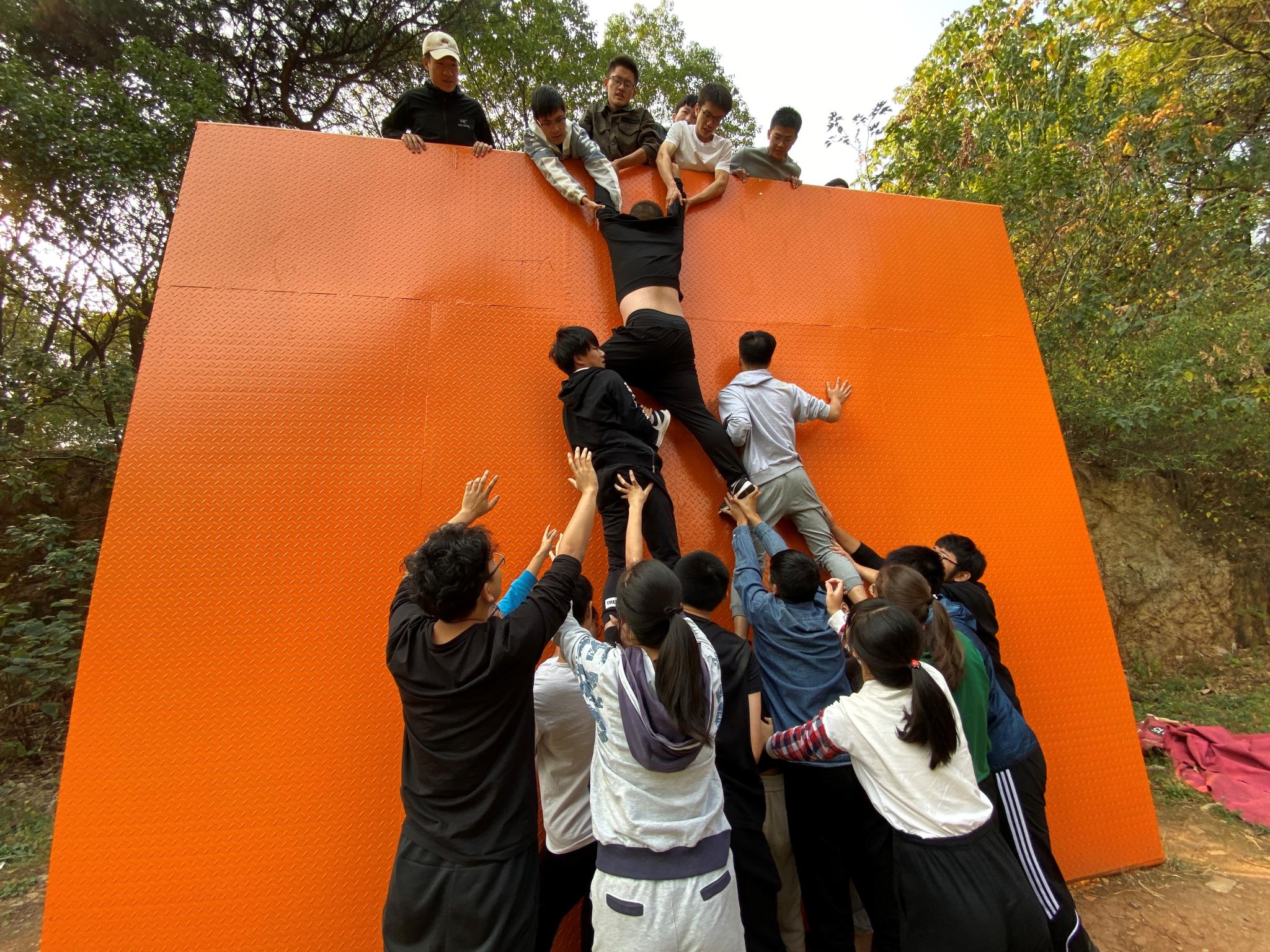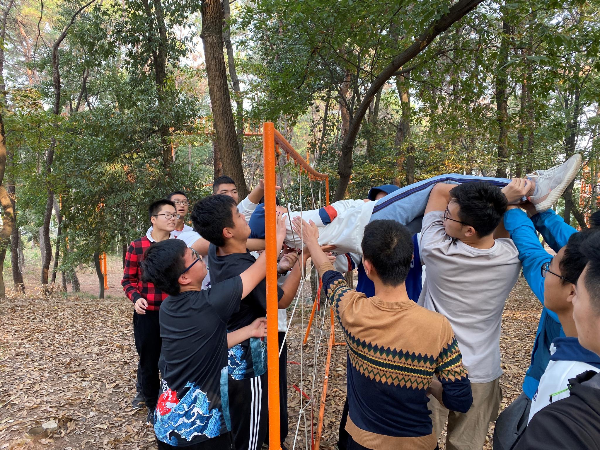 上午8时许,全体学生在辅导员的带领下,乘车抵达中国地质大学素质拓展基地。完成了一系列简单而有趣的热身活动后,同学们以班级为单位分别参加了“毕业墙”、“极速60秒”和“穿越电网”等三个活动。在各项活动中,每个班级都毫不示弱,面对困难也没有退缩,勇于携手共进突破难关。