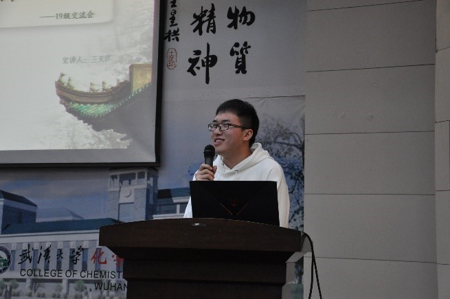 最后是化院大三学长王天洋,他主要分享了己如何平衡学习与工作的经验。作为学生会主席,他在这方面颇有心得。他强调:“要有独立的思想,有自我的判断,掌握‘平衡’的‘动力学机理’,找到适合自己的学习方法,保持专注,积极听取建议,调整心态,接受理想与现实间的差距。”