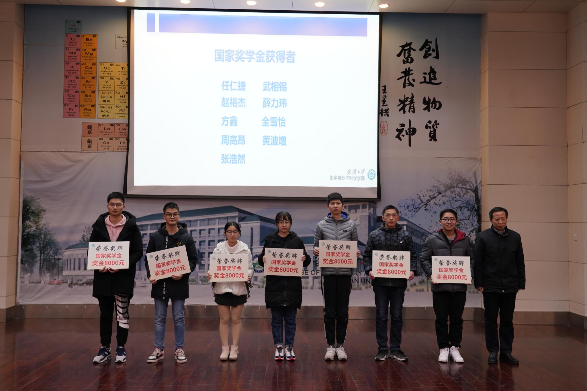 进入表彰颁奖环节,卢昌宁书记首先为荣获国家奖学金的优秀学生颁奖。2018级周高昂同学作为国奖获得者代表发言,他通过介绍自己的学习心得和工作经验,给予学弟学妹深刻启发。