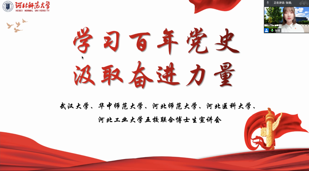 博士生宣讲团联合华中师范大学、河北师范大学、河北医科大学、河北工业大学博士生宣讲团举行“联合宣讲党史,汲取奋斗力量”主题博士生宣讲会。骰宝