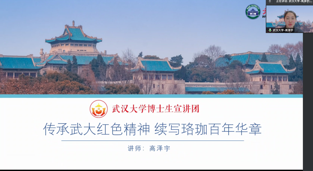 博士生高泽宇为大家做了题为“传承武大红色精神 ,续写珞珈百年华章”的宣讲。骰宝