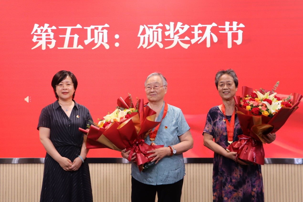 共有四位老党员黄永菊、胡胜水、付佳雄、王辉获“光荣在党50年”荣誉称号,院党委书记王丽萍为到场的黄永菊、王辉两位老党员颁发纪念章。老党员们艰苦奋斗的光荣事迹激励着青年党员在新时代砥砺前行、赓续奋斗。
