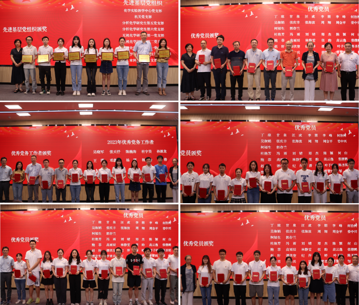委员会关于表彰先进基层党组织、优秀共产党员和优秀党务工作者的决定》。此次学院党委共评选表彰了化学实验教学中心党支部等9个先进基层党组织,吴晓军等11名优秀党务工作者,周翔等50名优秀共产党员。院党委书记王丽萍,党委委员兼副院长周金平、甘泉,党委委员唐红定为受到表彰的集体和个人领奖。