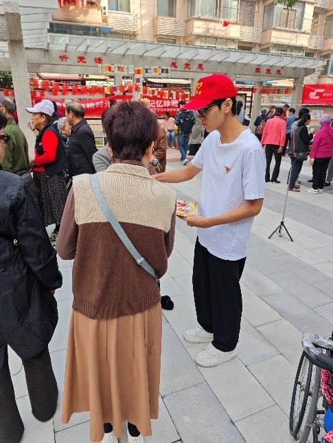清晨的阳光洒在社区广场,党员们精心布置活动现场,准备好宣传单和小礼物。九点未到,已有不少老人驻足询问,同学们热情相迎,发挥专业优势,用通俗易懂的语言为老人们讲解居家清洁的实用技巧。